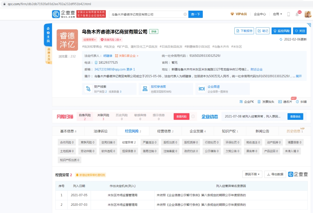 ,输入企业名称查询企业是否被列入异常,以及列入原因。