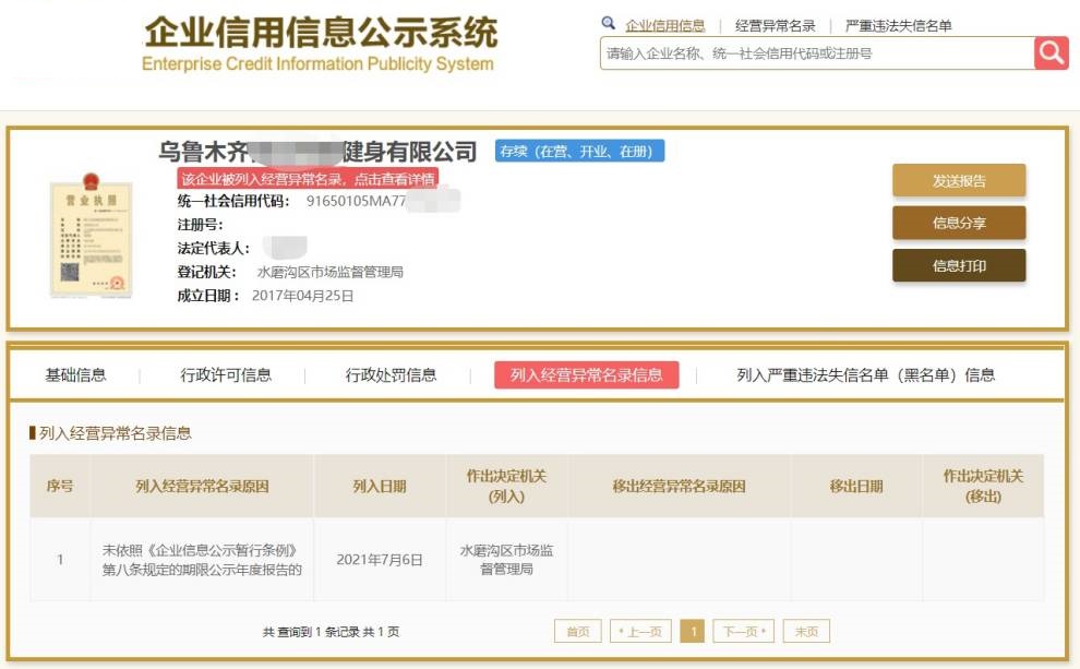 第四步:提交申请5个工作日内,企业顺利移出异常名录,恢复正常: